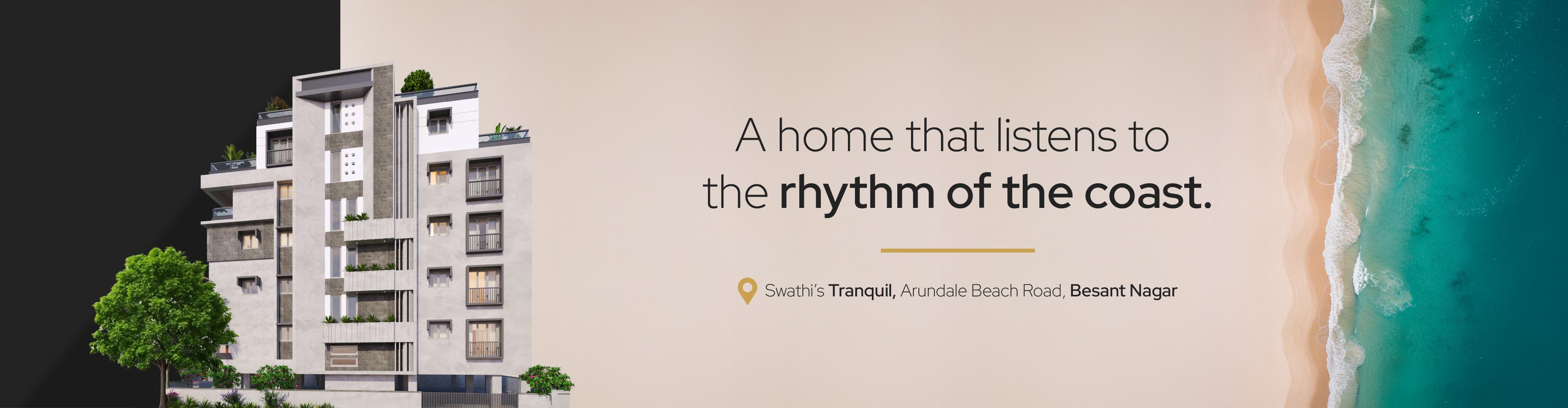 Tranquil is a boutique residential development designed for privacy, space, and calm coastal living. Located on Arundale Beach Road, one of Besant Nagar’s most sought-after addresses, the project offers a limited collection of expansive homes crafted for refined, everyday living. Each floor features a single 3 BHK residence with a study, spanning 3,110 sq. ft., allowing for generous layouts, abundant natural light, and excellent ventilation. The design emphasises openness, privacy, and a seamless connection to the coastal environment. Tranquil combines the tranquillity of a beachside neighbourhood with the convenience of city living. Elliot’s Beach within minutes, Theosophical Society under 1.5 km, Shiv Nadar School and St. Michael’s Academy close by MGM Malar Hospital easily accessible well-connected to key parts of Chennai.